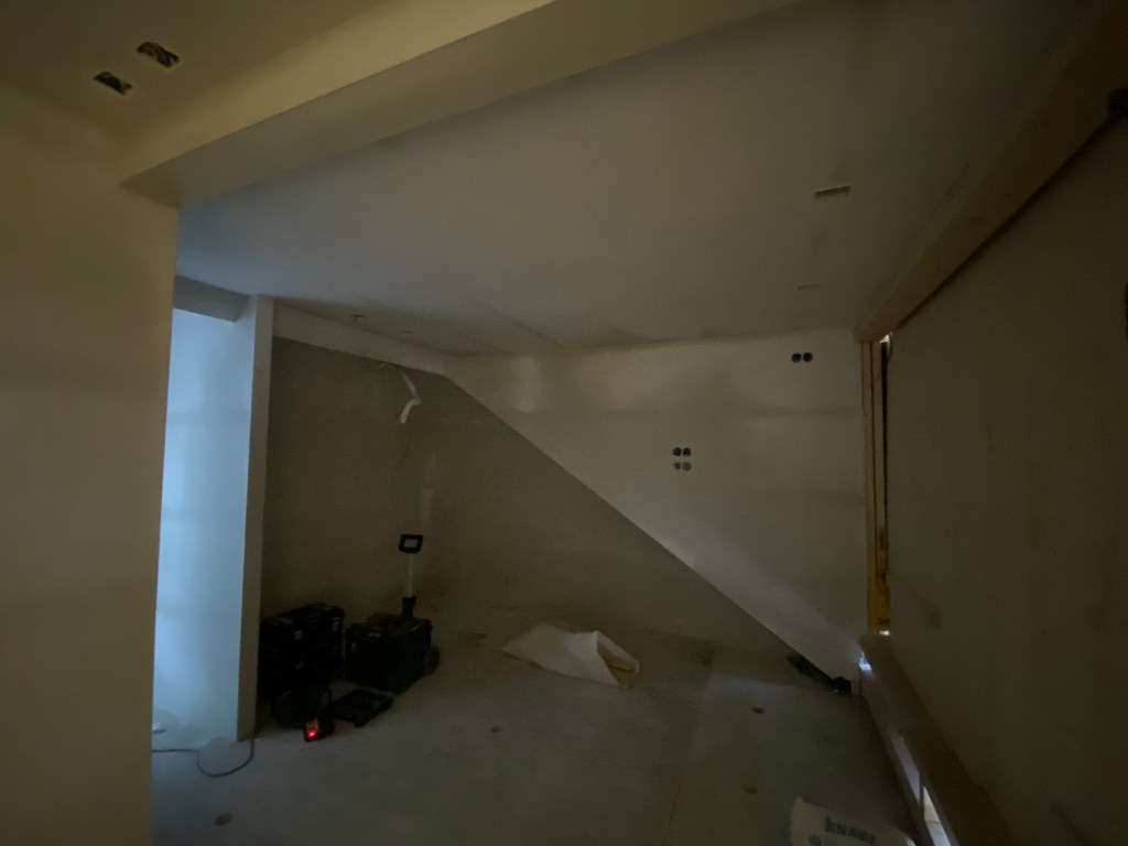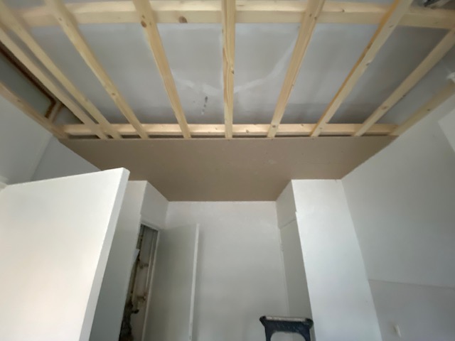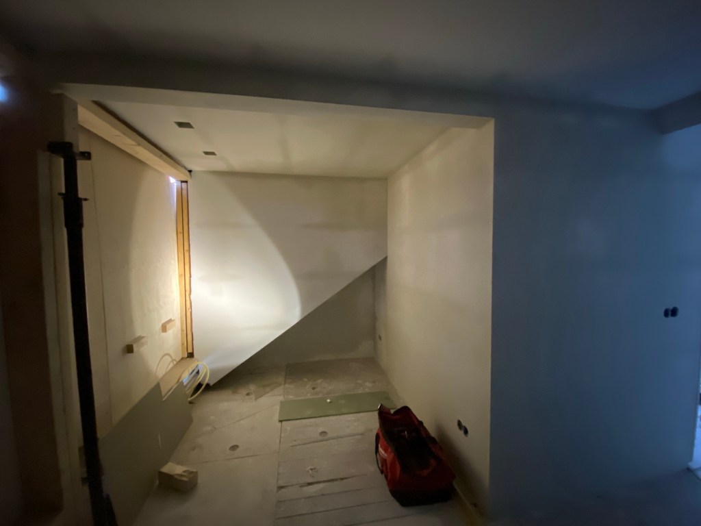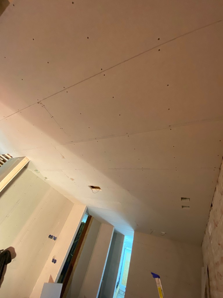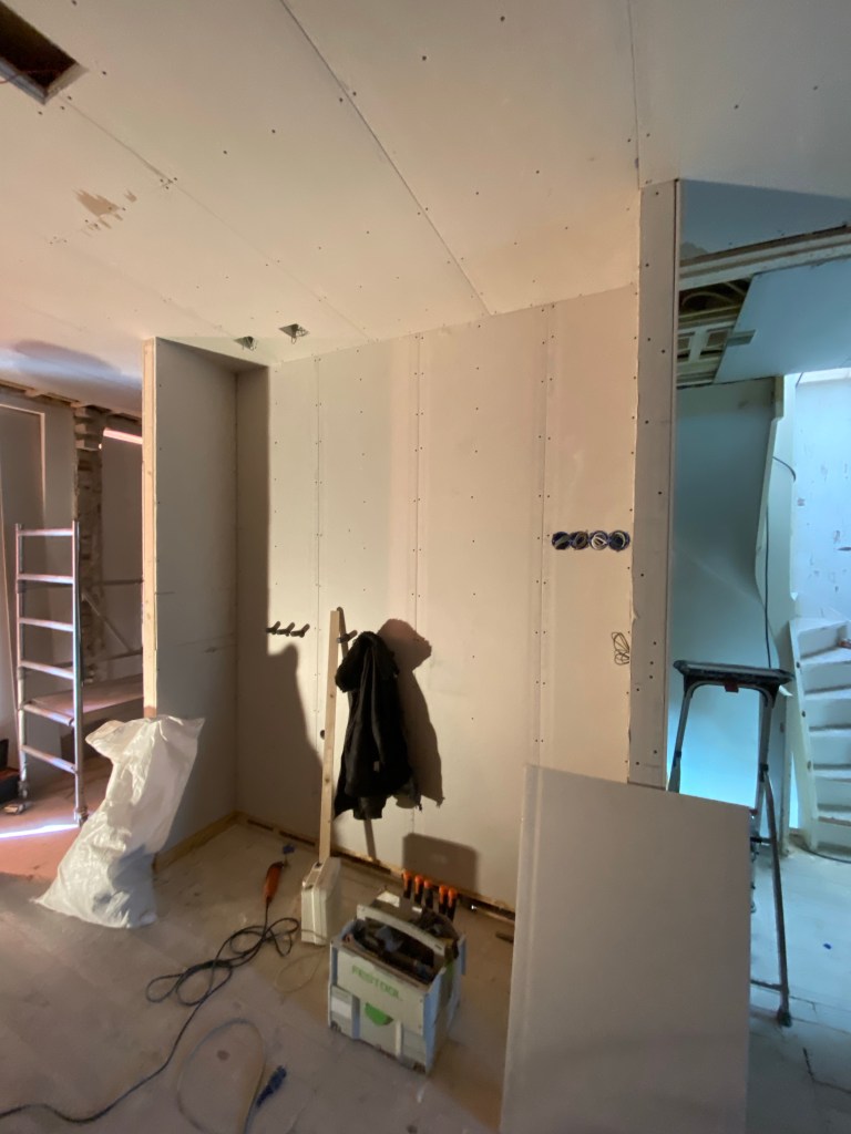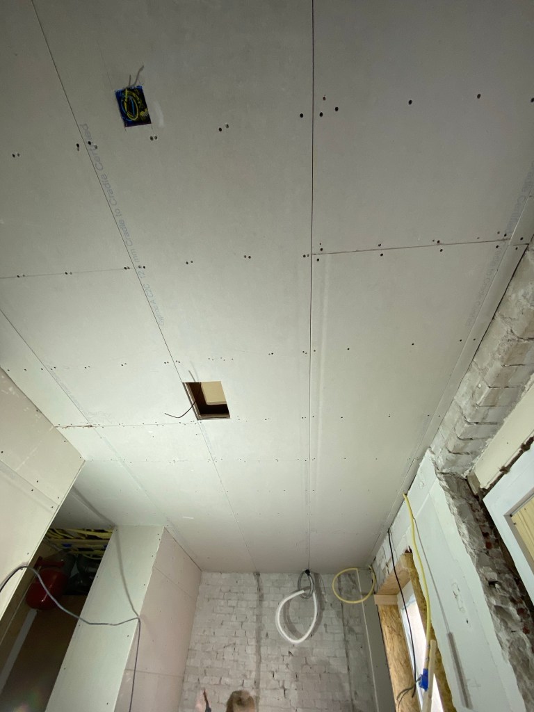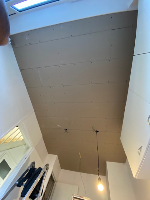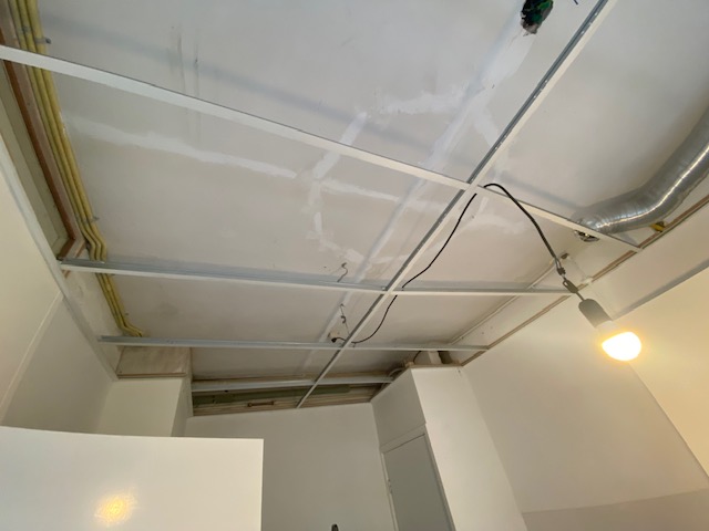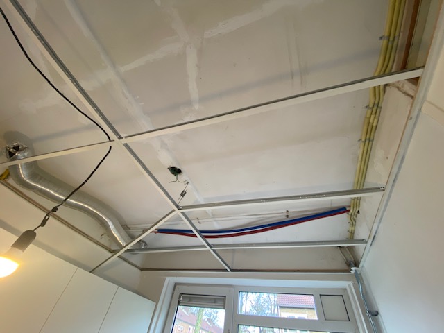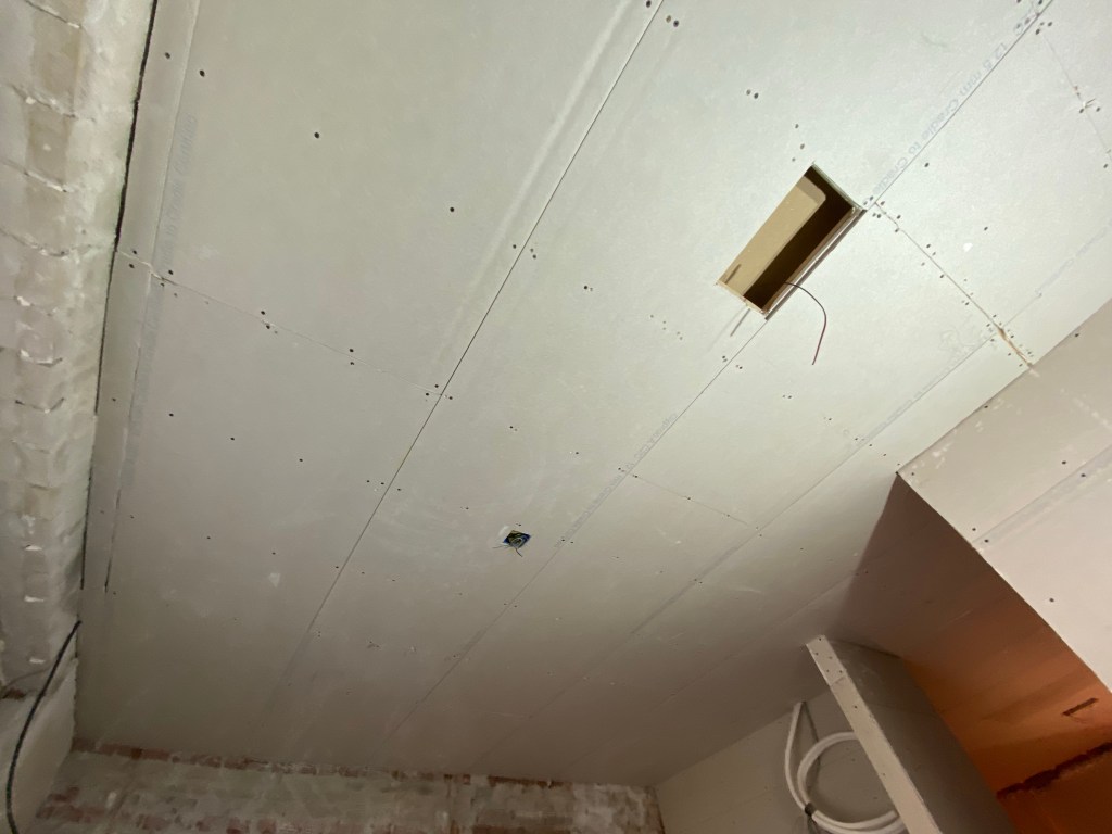 Hier heb ik het oude systeemplafond verwijderd en een nieuw gipsplafond geplaatst.
