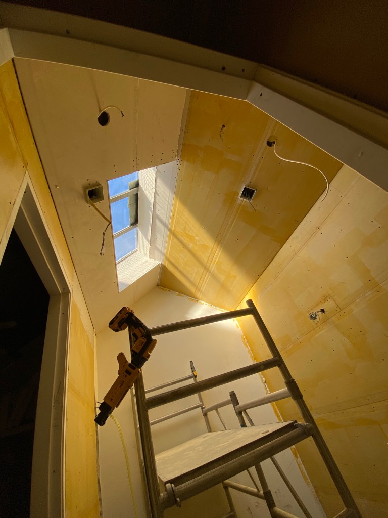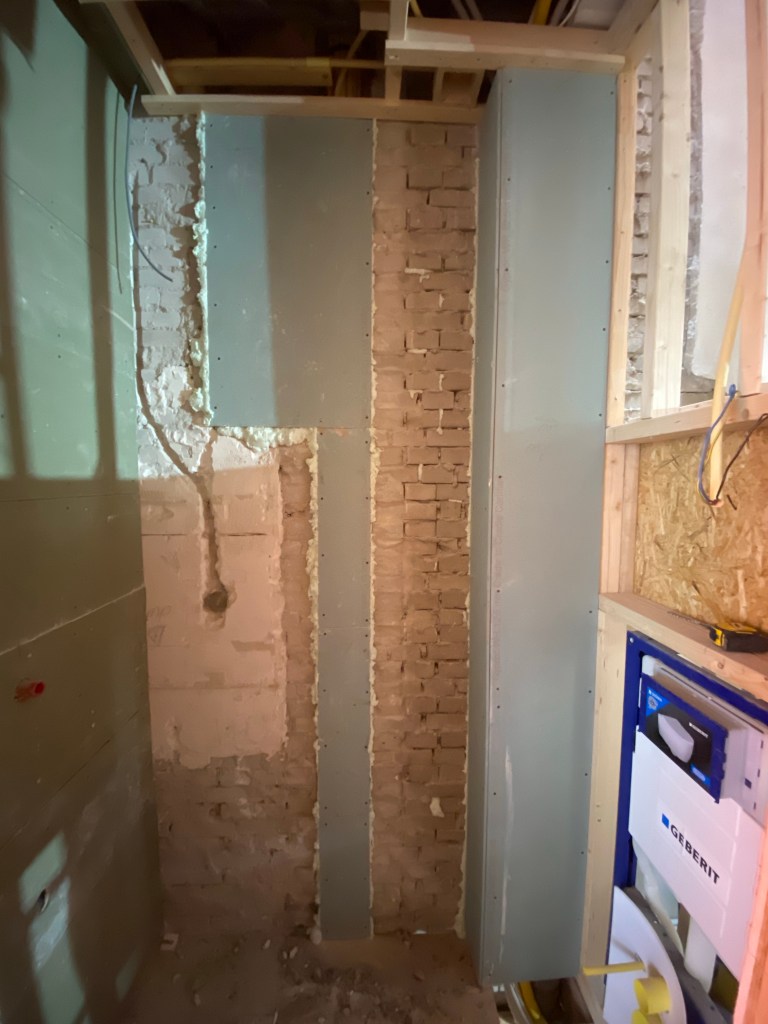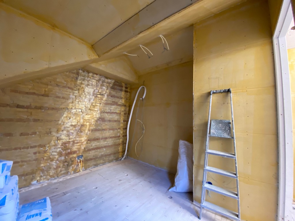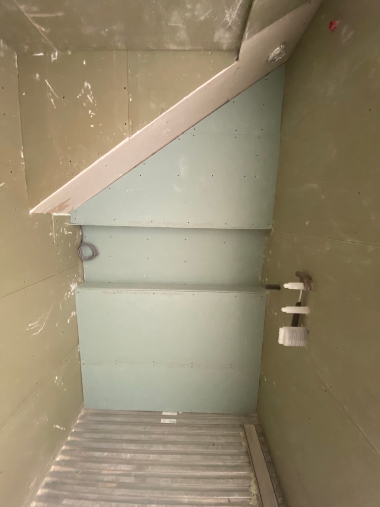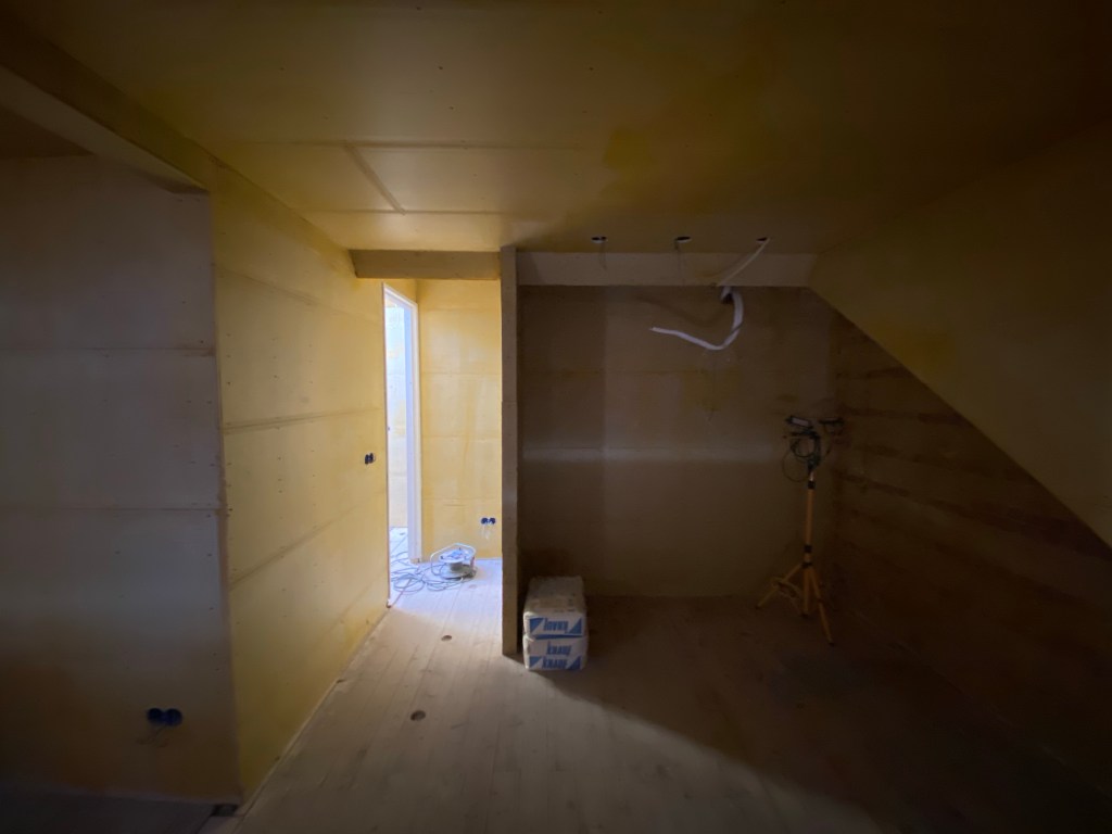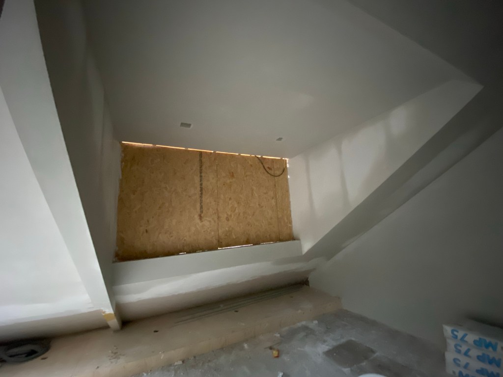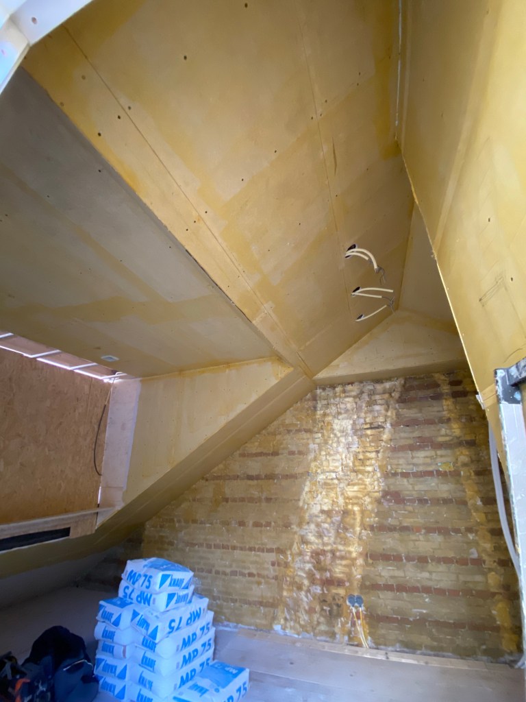 Hier heb ik het oude systeemplafond verwijderd en een nieuw gipsplafond geplaatst.