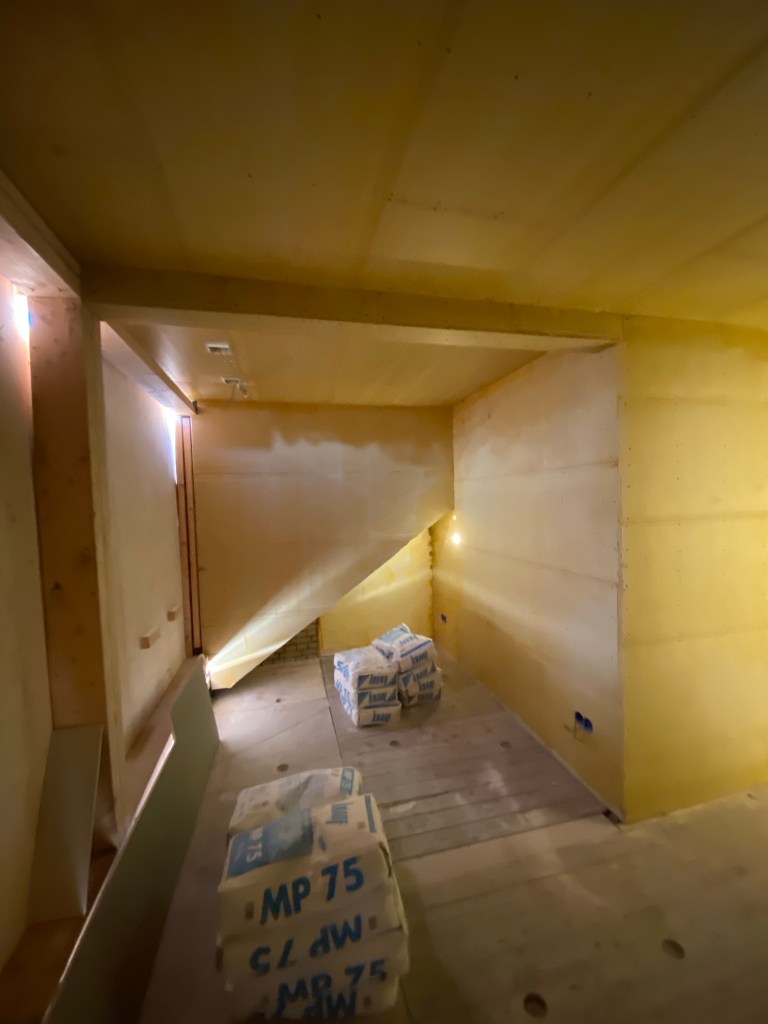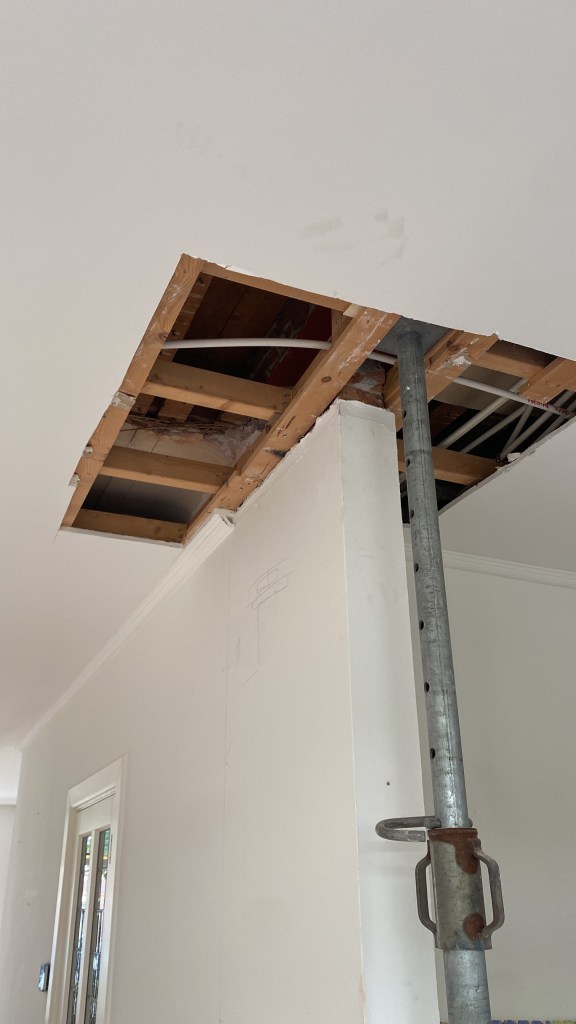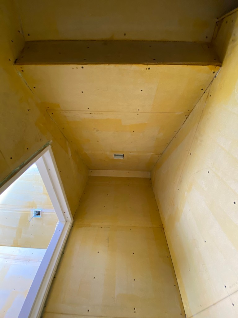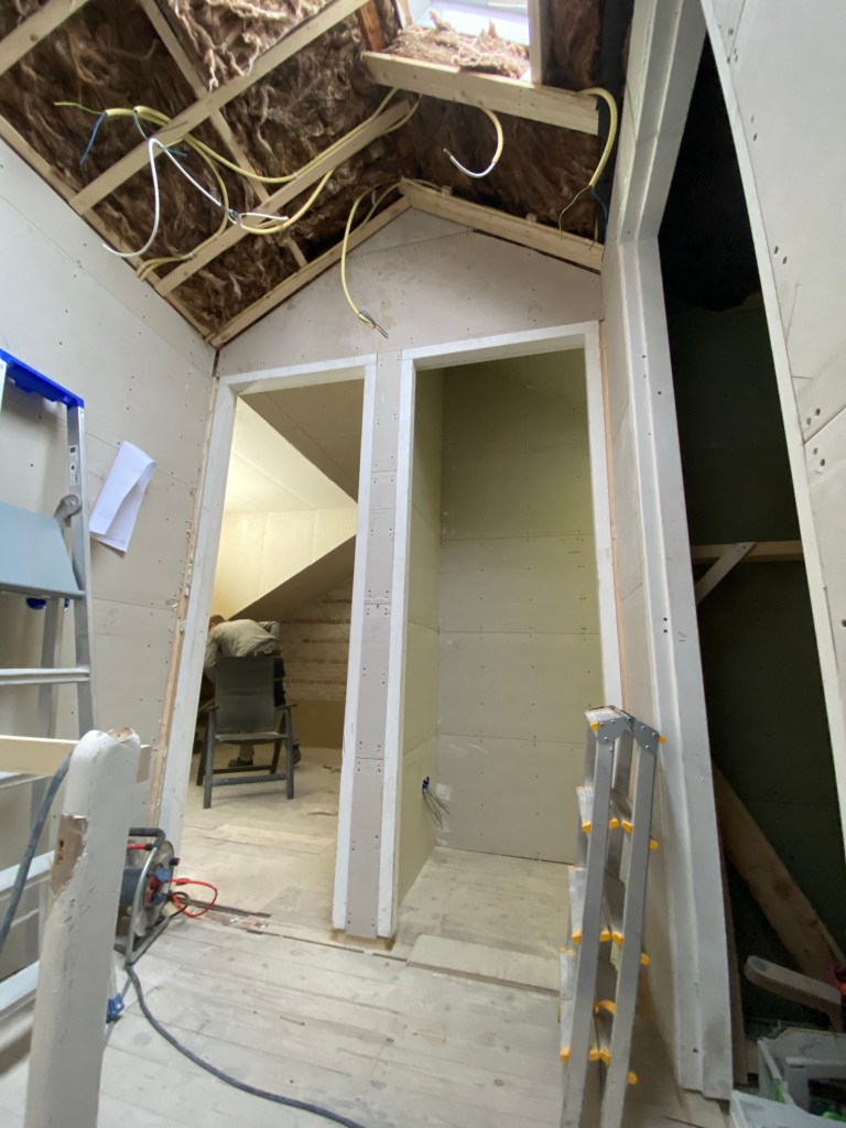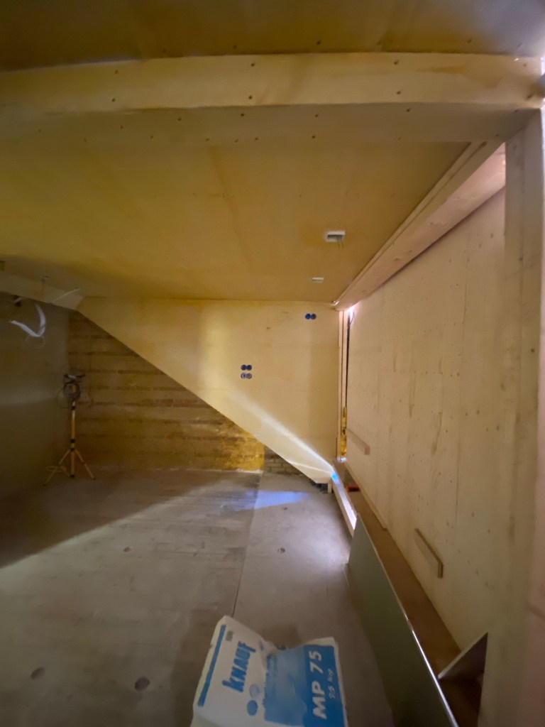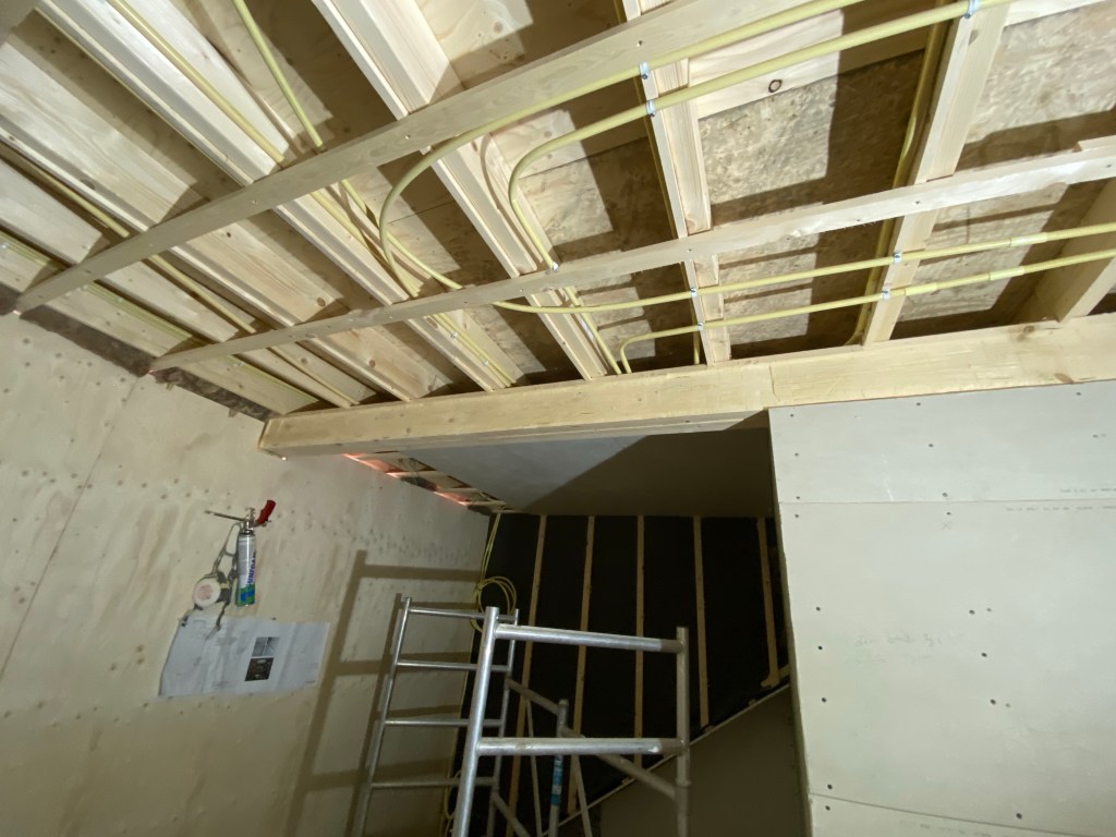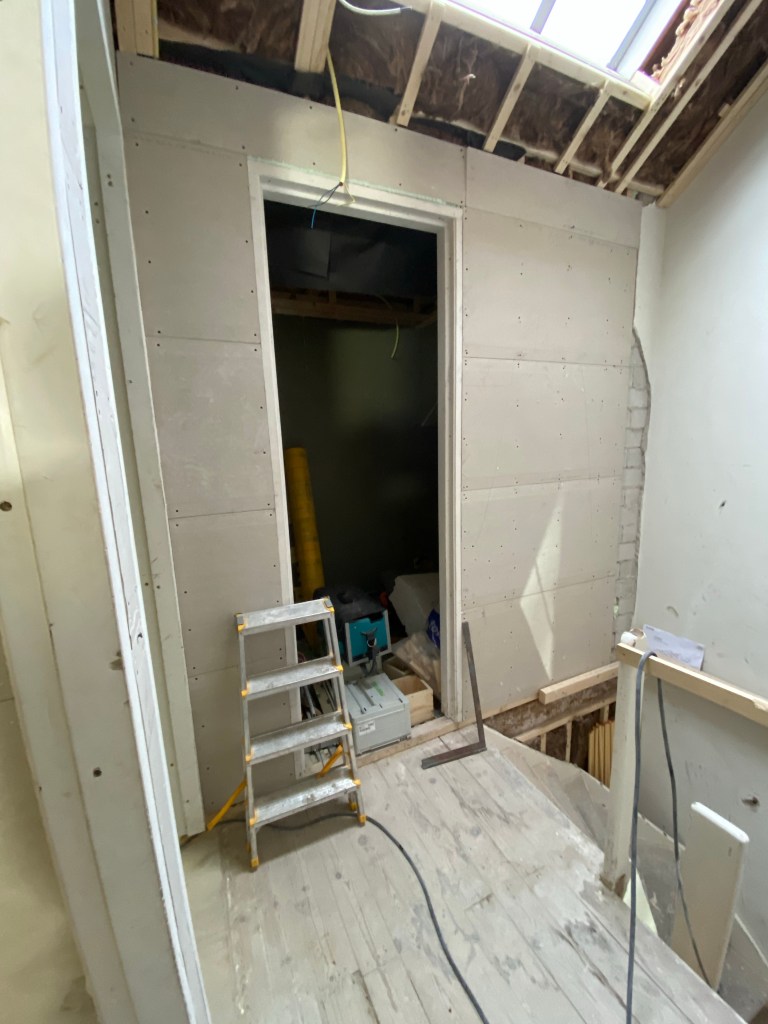 Hier heb ik het oude systeemplafond verwijderd en een nieuw gipsplafond geplaatst.