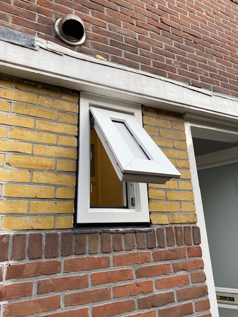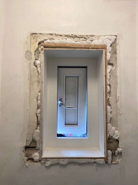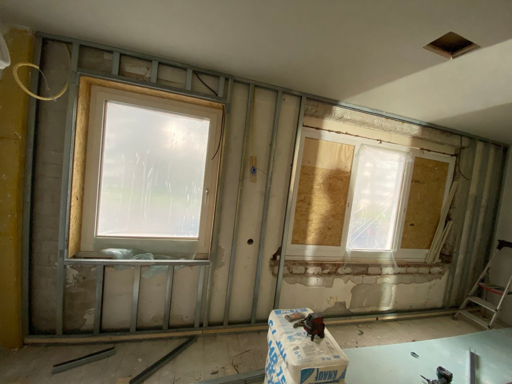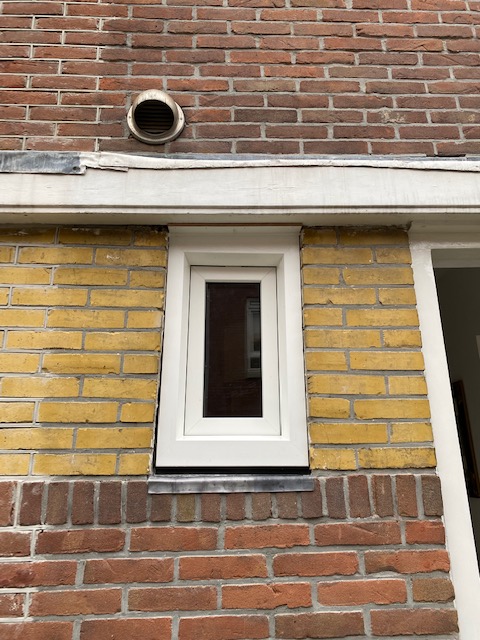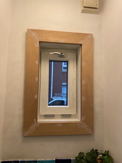 Hierbij heb ik het oude raamkozijn verwijderd en een nieuwe geplaatst en afgetimmerd.
