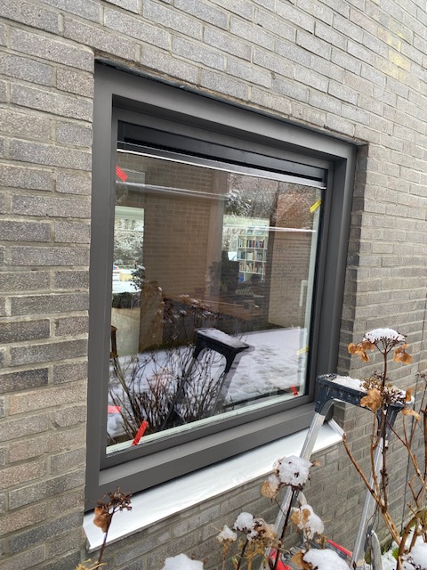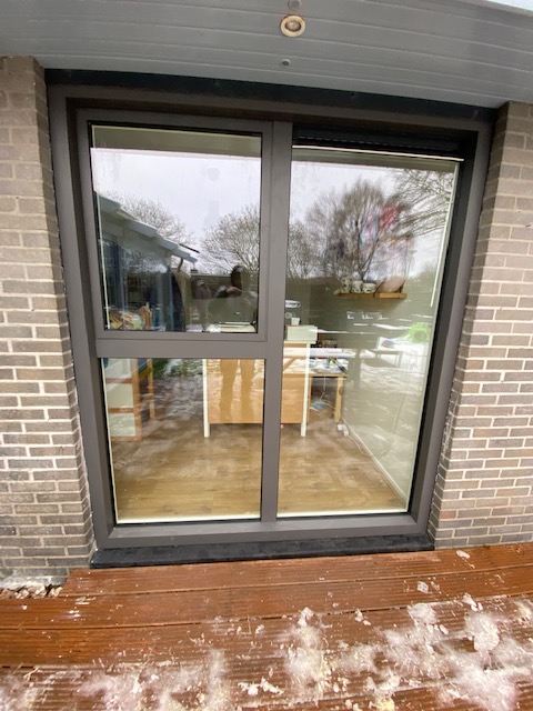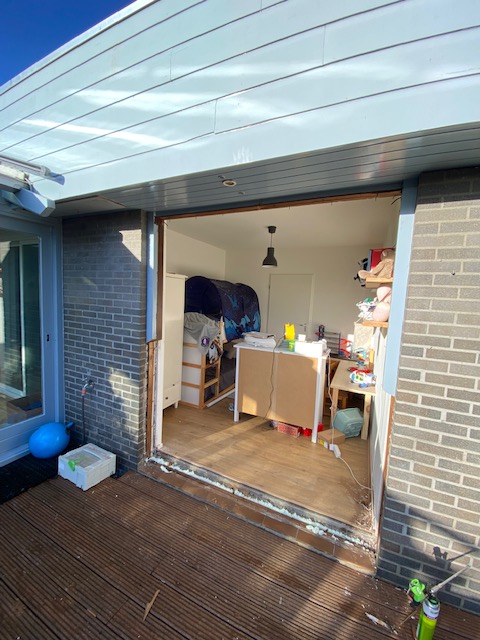 Hier heb ik 2 oude schuifpuien en het keukenraam vervangen door aluminium kozijnen.